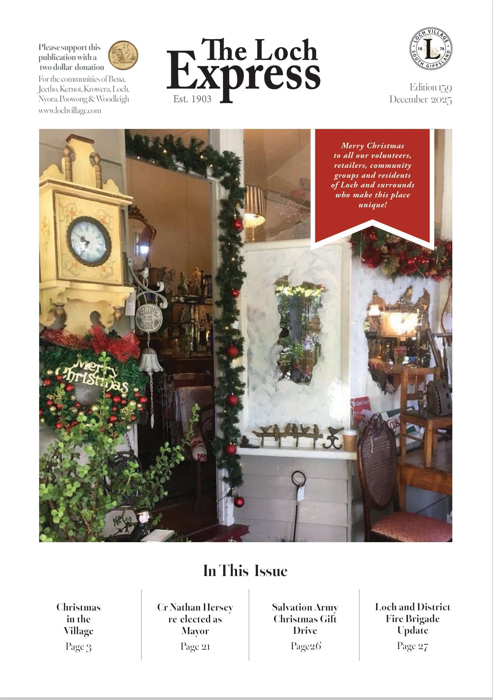 Approximately 100 km southeast from Melbourne and located at the foothills of the Strzelecki Ranges you will find the charming villages of Loch, Poowong, Bena, Kernot and Nyora. The perfect place to base your getaway while exploring the many wonderful attractions and artisans our region has to offer.