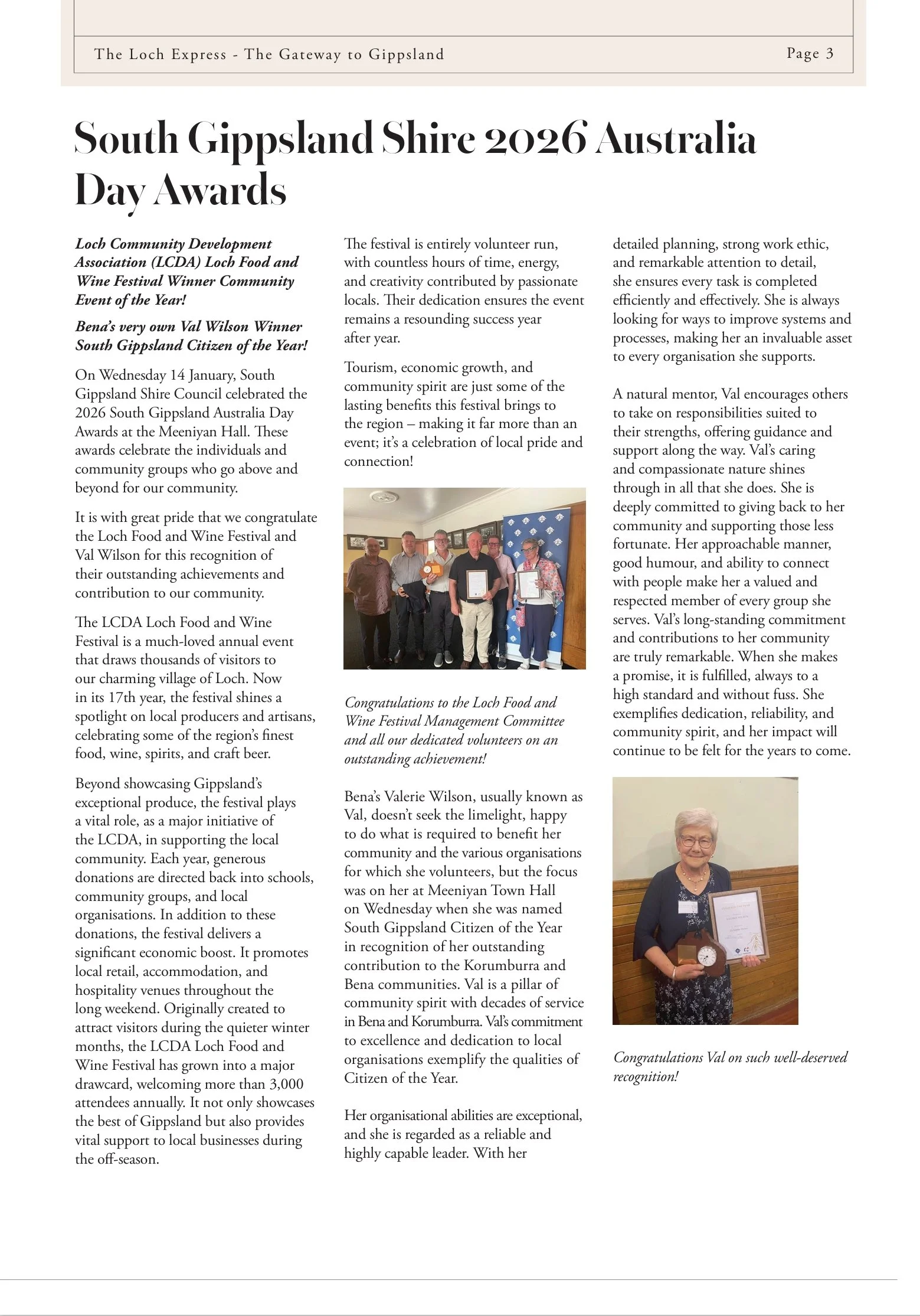 We appreciate the hard work our pioneers undertook to establish our region, and our dedicated locals for preserving and enhancing our villages, from volunteering to establishing businesses, we thank you all for supporting these local initiatives.